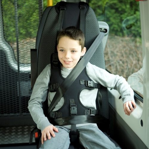 Skyddet gör det svårt att öppna bälteslåset, om man inte vet hur. Vi brukar använda det till barn eller äldre med speciella behov.